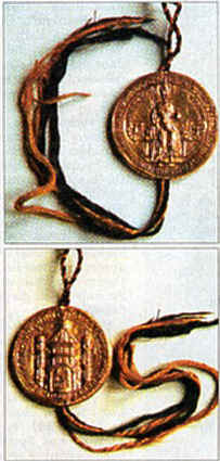 Goldene Bulle: Die Vorderseite des Siegels zeigt Karl IV. auf dem Thron mit Reichsinsignien, begleited von Wappenschilden mit dem bömischen Löwen und dem Reichsadler. Auf der Rückseite des siegels ist die "Aurea Roma", die Fassade der Lateranbasilika, als Sinnbild Roms zu sehen. Quelle: Frankfurter Neue Presse vom 20.09.1999 Die wichtigsten Dokumente aus der über 1200-jährigen Geschichte unserer Stadt kommen selten ans Licht des Tages. Sie werden in den Stahlschränken des Stadtarchivs gehütet. Aber sie können Geschichten erzählen. FNP-Autor Michael Dellith stellt einige von ihnen in loser Folge vor. Frankfurt. Schon Goethe hat sie, wenn man seinen Erinnerungen in Dichtung und Wahrheit" Glauben schenken darf, in der Kindheit auswendig gelernt: die "Goldene Bulle", das wohl "kostbarste Stück Frankfurter historischer Überlieferung", wie es Dieter Rebentisch, der Leiter des Instituts für Stadtgeschichte, formuliert. Und das, obwohl es sich "nur" um ein Kopie handelt. Das 86-seitige Pergament mit dem dicken Goldsiegel, das in einer Kapsel lateinisch: "bulla"- verwahrt wurde, war 1366 in der Kanzlei Kaiser Karls IV. abgefasst worden, als Abschrift des 1356 ausgefertigten lateinischen Originals. Der Kaiser (1316 bis 1378) - er gründet auch 1348 in Prag die erste deutsche Universität -besiegelte damit, ein Jahr nach seiner Krönung, die Vorrangstellung des mittelalterlichen Frankfurt im Heiligen Römischen Reich Deutscher Nation: Die Stadt wurde als Ort der Königswahl festgelegt. 1371 ließ der Rat die Urkunde ins Deutsche übersetzen. Das kostete die Stadtväter 6 Gulden. Dieses älteste, 1474 in Nürnberg gedruckte Grundgesetz des deutschen Reiches übertrug die Königswahl auf die drei geistlichen Kurfürsten, die Erzbischöfe von Mainz (Erzkanzler für Deutschland), Trier (Erzkanzler für Burgund) und Köln (Erzkanzler für Italien), und die vier weltlichen Kurfürsten, den König von Böhmen (Erzschenk), den Herzog von Sachsen (Erzmarschall), den Pfalzgrafen bei Rhein (Erztruchsess) und den Markgrafen von Brandenburg (Erzkämmerer). Frankfurt aber wurde durch diese Urkunde die wichtigste Reichsstadt und blieb es bis 1806 dem Ende des Kaiserreichs. Freilich war dies auch mit gestrengen Vorschriften verbunden: "Wir befehlen aber den Bürgern von Frankfurt und gebieten ihnen, dass sie kraft des Eides, den sie deshalb gemäß unserer Verordnung bei den Heiligen schwören müssen, alle Kurfürsten insgesamt und jeden einzelnen samt all ihren Leuten, die ein jeder von ihnen mit 200 Pferden in die Stadt gebracht hat, vor dem Angriff eines anderen (Kurfürsten), wenn zwischen ihnen eine Misshelligkeit entstehen sollte, wie auch sonst vor jedermann mit treuem Fleiß und ernstlicher Sorgfalt beschützen und behüten sollen; widrigenfalls machen sie sich des Meineids schuldig und sollen außerdem alle ihre Rechte, Freiheiten, Privilegien, Vergünstigungen und Gnaden, die sie vom Heiligen Reich bekanntlich empfangen haben, gänzlich verlieren und wegen ihrer Tat mit Leib und Gut insgesamt in Reichsacht verfallen; und es soll alsdann jedermann erlaubt sein, eigenmächtig und ohne Gerichtsurteil dieselben Bürger, die wir in diesem Fall jetzt und künftig für rechtlos erklären, als Verräter, Ungetreue und Empörer gegen das Reich ungestraft anzugreifen, dergestalt, dass der Angreifer weder von dem Heiligen Reich noch von sonst jemand irgendeine Strafe zu befürchten braucht." So steht es in dem Dokument zu lesen. Darüber hinaus sollten die Frankfurter Bürger während der Zeit der Wahl, niemanden in die Stadt lassen -Kurfürsten und ihre Gesandten natürlich ausgenommen. Anfang des 18. Jahrhunderts wurde die "Goldene Bulle", von der Frankfurts erster und berühmtester Buchdrucker und Verleger, Christian Egenolff ("Egenolffstraße", Nordend), eine deutsche Ausgabe verfertigte, zu einer Einnahmequelle der Stadt. So berichtet ein Begleiter des englischen Herzogs von Hamilton, der sich 1719 in Frankfurt die ,Goldene Bulle" anschaute, dass ein Besichtigungsgeld von einem Dukaten verlangt wurde. Keine Frage. In Frankfurt war man schon immer geschäftstüchtig. Nicht nur sehen, sondern gleich mitnehmen wollte das kostbare Dokument im Jahre 1796 der französische General Custin. Er verlangte nach der Besetzung Frankfurts die Herausgabe der "Goldenen Bulle". Sie sollte nach Paris gebracht werden. Der Frankfurter Rat hatte in weiser Voraussicht solcher Gefahr jedoch das Original vor der Besetzung der Stadt nach auswärts verlagert. Die "Goldene Bulle" blieb so Frankfurt erhalten. Gefahr drohte das nächste Mal von Adolf Hitler. Er legte 1938 der Stadt Frankfurt dringlich nahe, ihm die "Goldene Bulle" zu schenken. Schließlich gab er sich mit einer alten Abschrift zufrieden. Heute lagert sie in den Panzerschränken des Stadtarchivs im Karmeliterkloster.